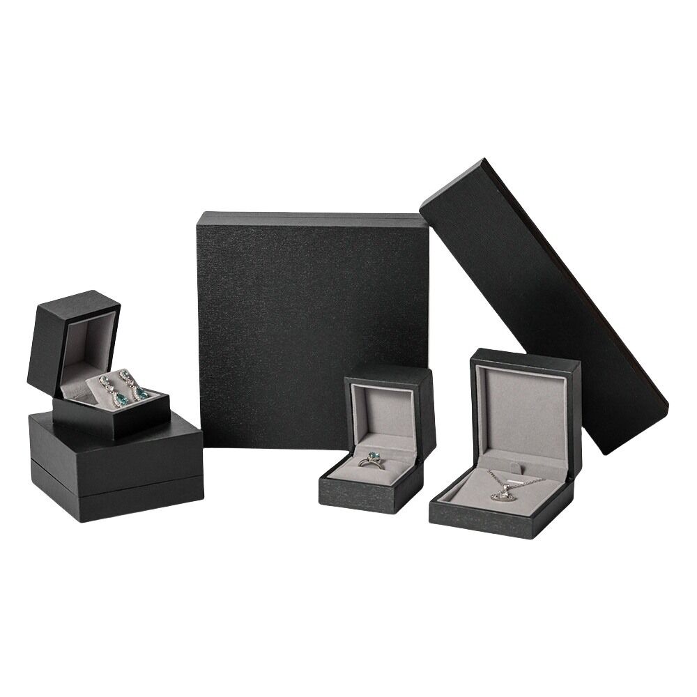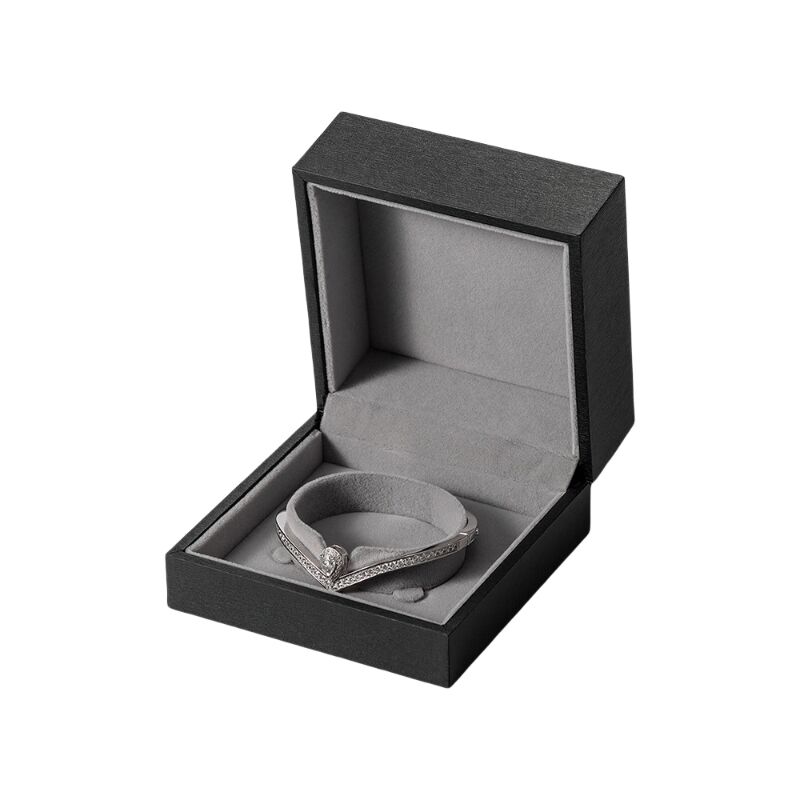 This bangle bracelet jewellery box combines ruggedness with elegant simplicity, perfect for showcasing fine bangles and bracelets in understated sophistication. Construction features a rugged HDPE construction overlaid with matte black textured paper, offering a sharp and sophisticated look that will appeal to several styles of jewellery. Within, the soft grey velvet lining provides bangle scratch-free and protective cushioning, solving presentation and protection problems in one move. With 10cm x 10cm x 5.5cm square dimensions, most standard bracelets and bangles fit the interior with a space-saving footprint for efficient display and packaging. Foil stamping, blind debossing, and screen print options are offered, allowing the lid surface to be customized for jewellery retailers who need to enhance their retail or gift presentation.