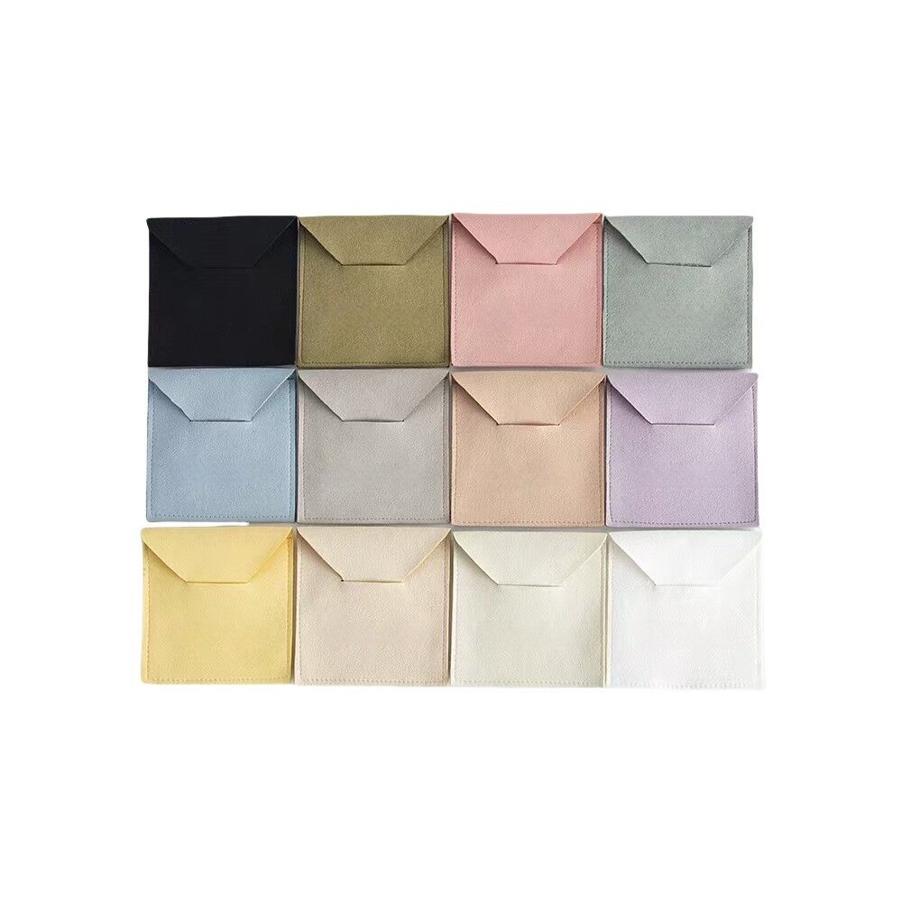 The pouch is crafted of high-quality, soft microfiber leather and is styled in the traditional envelope style. The 8×8 cm size is perfectly sized for containing the ring, earrings, pendants, and small memento pieces tidily but fashionably. The snap-less tuck-in flap ensures visual simplicity and security. With their wide range of colors and custom brand imprint options spanning silk screen, foil stamp, and deboss, the pouch is an enhancement to the brand experience for jewelry makers and retailers alike. From gifting to storage to retail display enhancement, they offer an upgraded, eco-friendly solution. The plush outer surface and cushion interior are perfectly sized for fragile items, and the minimalist style makes them suitable for a modern brand style.
