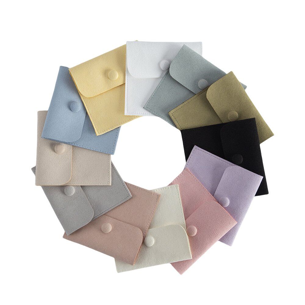 Elegant Snap Closure: Each pouch comes with a coordinating color snap button to seal the jewelry in a clean, understated fashion, perfect for showcasing upscale designs.