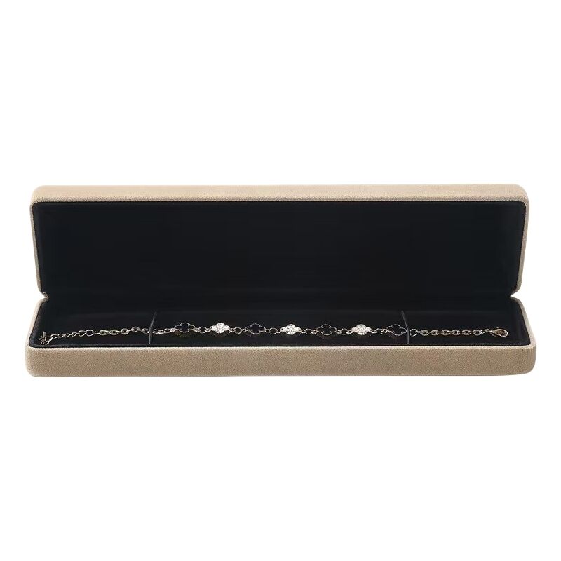 It is an elegant packaging answer designed for luxury necklace presentation and gifting. This fashionable field combines a robust steel interior structure with a smooth-contact outer floor wrapped in mild brown velvet, presenting both protection and visual appeal. Accented with a golden satin ribbon, it transforms the unboxing experience into an advanced ritual. The field is the right size for fine chain necklaces, bracelets, or slender pendants. The plush black inner lining contrasts beautifully with the outside and secures your necklace firmly in place. tailor-made for high-end jewelry retailers and brand-conscious wholesalers, this box no longer handiest protects valuable portions however enhances the brand image through customizable ribbon colorations and brand options.