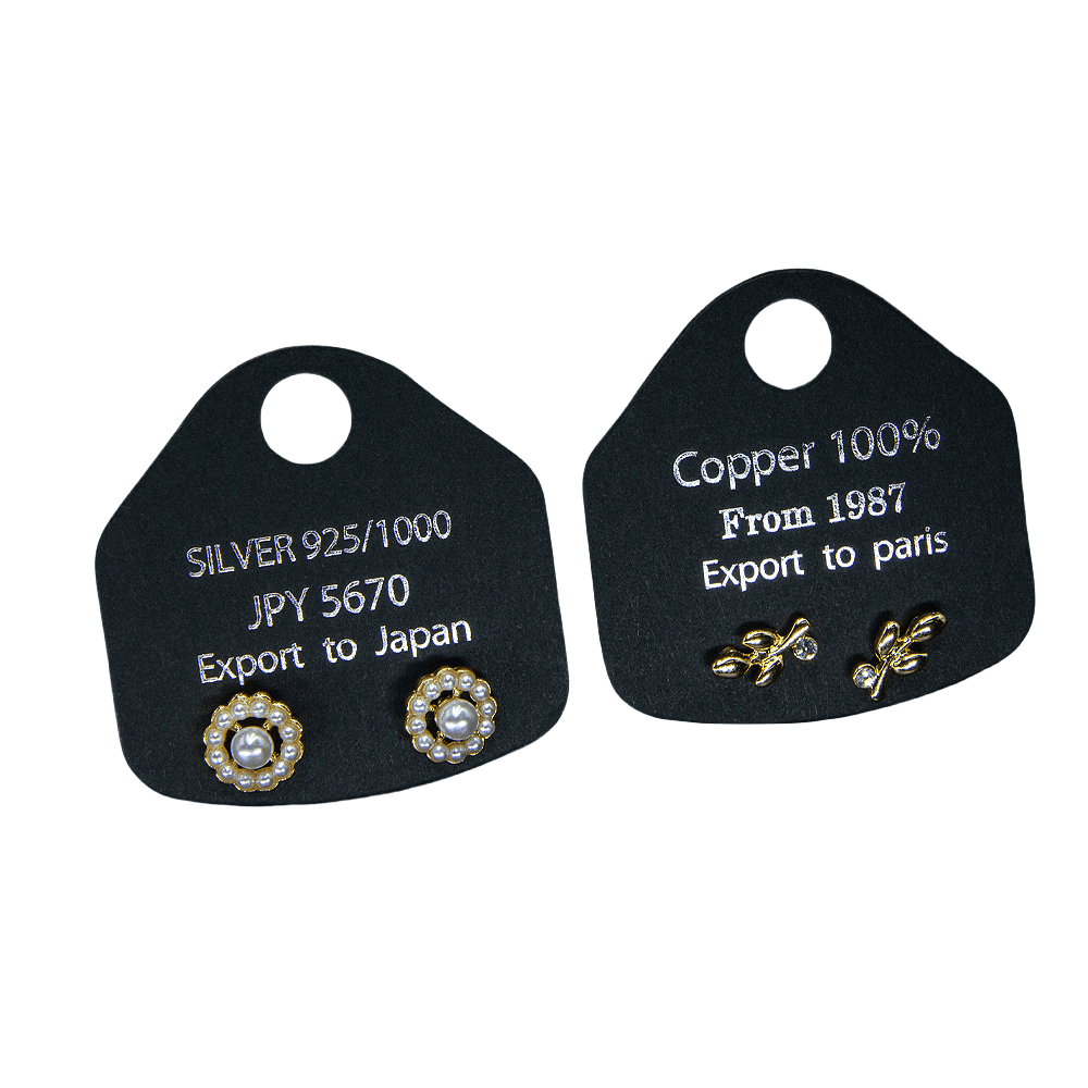 Made with robust 700GSM black card paper, these stylish display cards offer a modern, fashion-forward stage for your jewelry. The deep black finish creates a stunning contrast, emphasizing your products and branding elements dramatically.