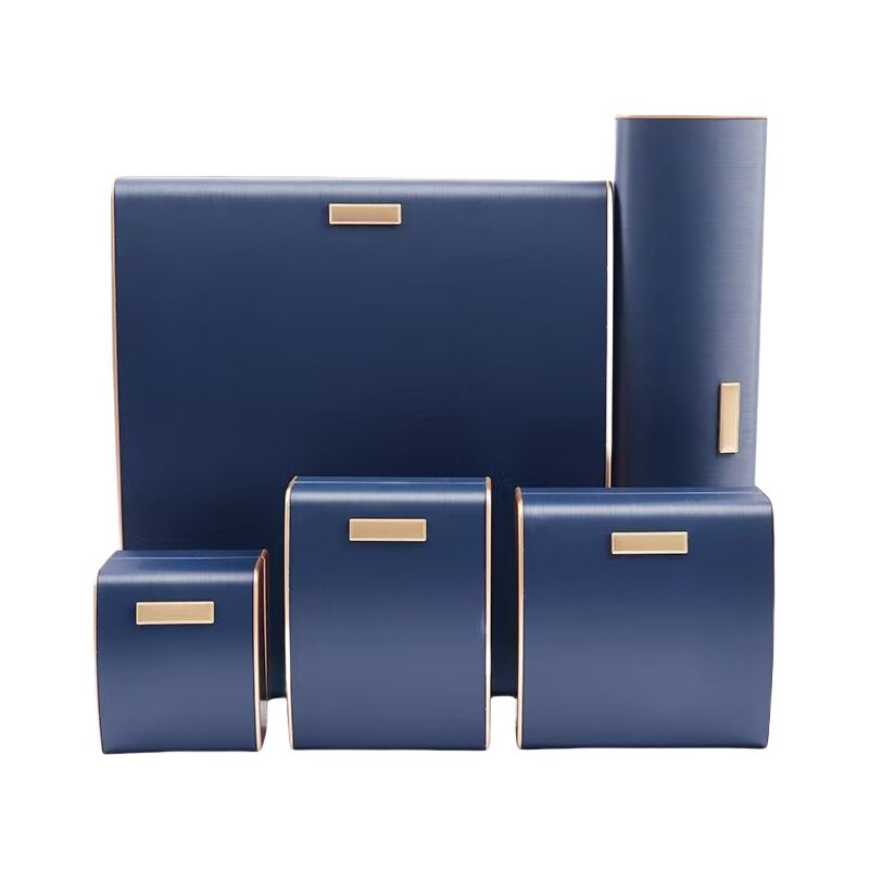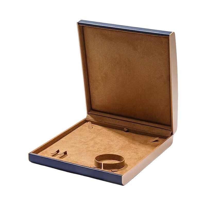 Function and beauty merge in the design of this jewelry set box, nicely suited to the display of earring, necklace, and bracelet sets. Dark navy PU leather wraps around the exterior case, providing a smooth and classy finish nicely suited to high-end retail. Plush suede-like velvet lining is used in the insert to protect delicate items, and compartments and holders are designed to keep each item securely in place. An HDPE frame provides a stable base for stability and long-lasting resistance to deformation. This box provides a great solution as a middle ground between luxury and function for high-end branding or daily jewelry presentation. Custom logo applications—foil stamping, debossing, or silk screen—are also available to take your unique branding strategy to the next level.