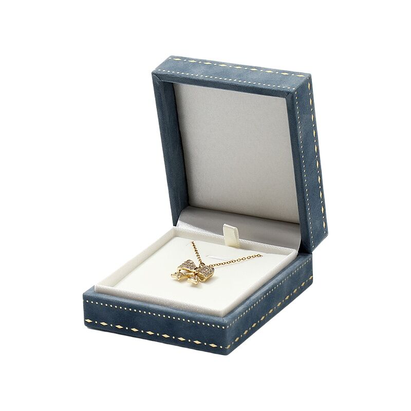 Designed to complement the high-end presentation of fine jewelry, this necklace gift box is an ideal solution for displaying pendants or fine chains in retail or high-end gifting. Constructed of a sturdy HDPE frame and wrapped in high-quality faux suede velvet, it marries tactile luxury with structural integrity. The box features an elegant stitched pattern along the edges, a secure insert, and padded lining to cradle the jewelry piece. 7.3×8.3×3.6cm in size, it strikes the ideal balance between compactness and visibility. Its hinged top opens smoothly for a high-end unboxing experience, and custom logo imprinting is available through silk screen, hot stamping, or debossing. Customized specifically for jewelry retailers wanting to elevate their packaging presentation through a high-end touch.