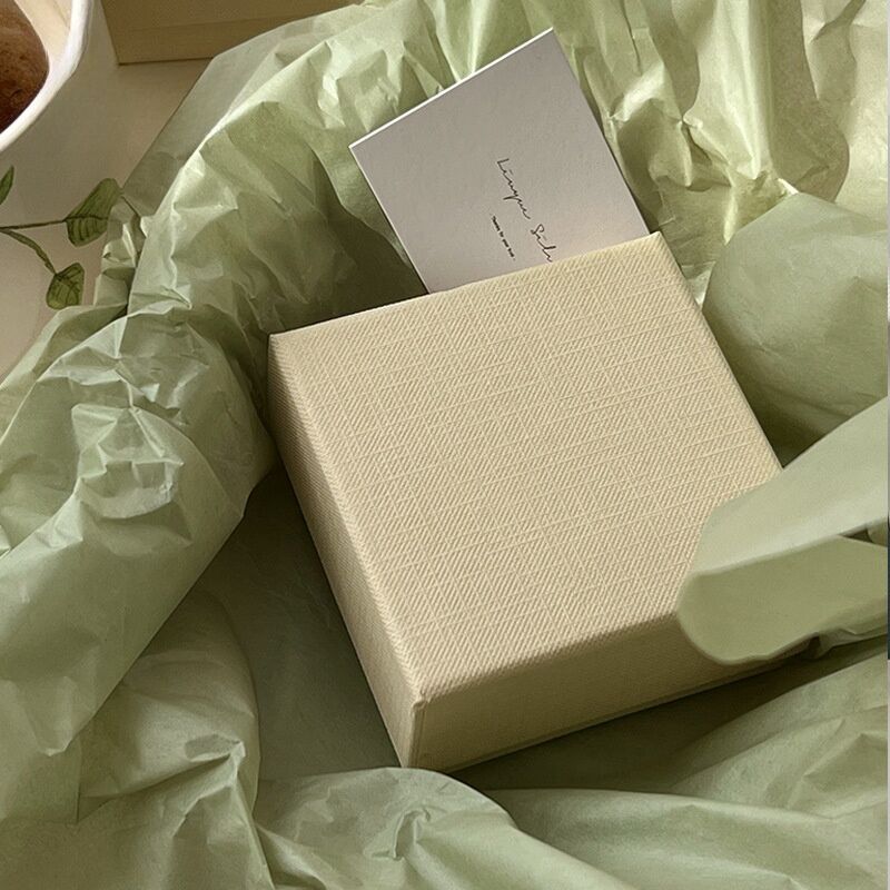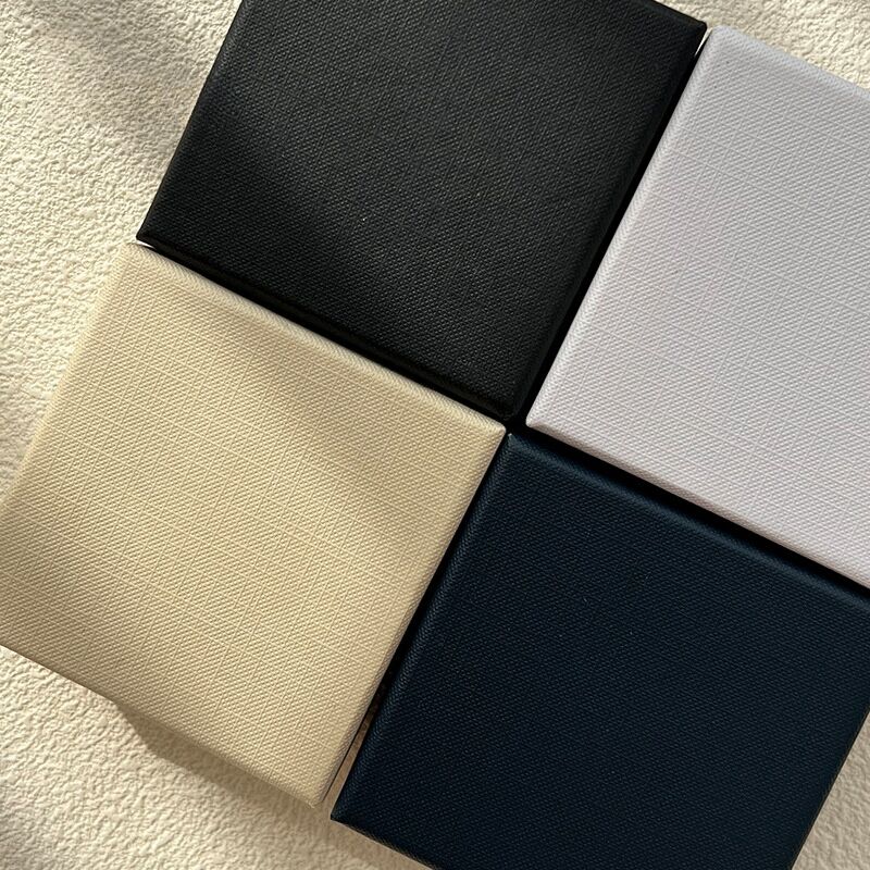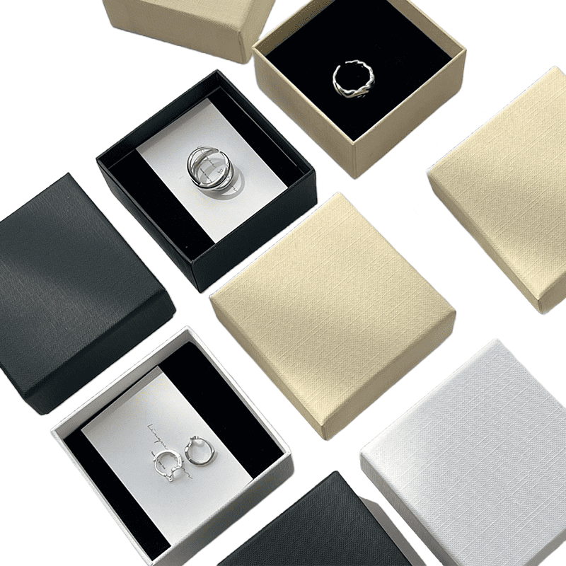 Our Linen Lid & Base Paper Jewelry Box features a unique linen-textured paper wrap that offers a distinct and sophisticated look. The tactile surface provides a refined touch that sets your jewelry packaging apart.