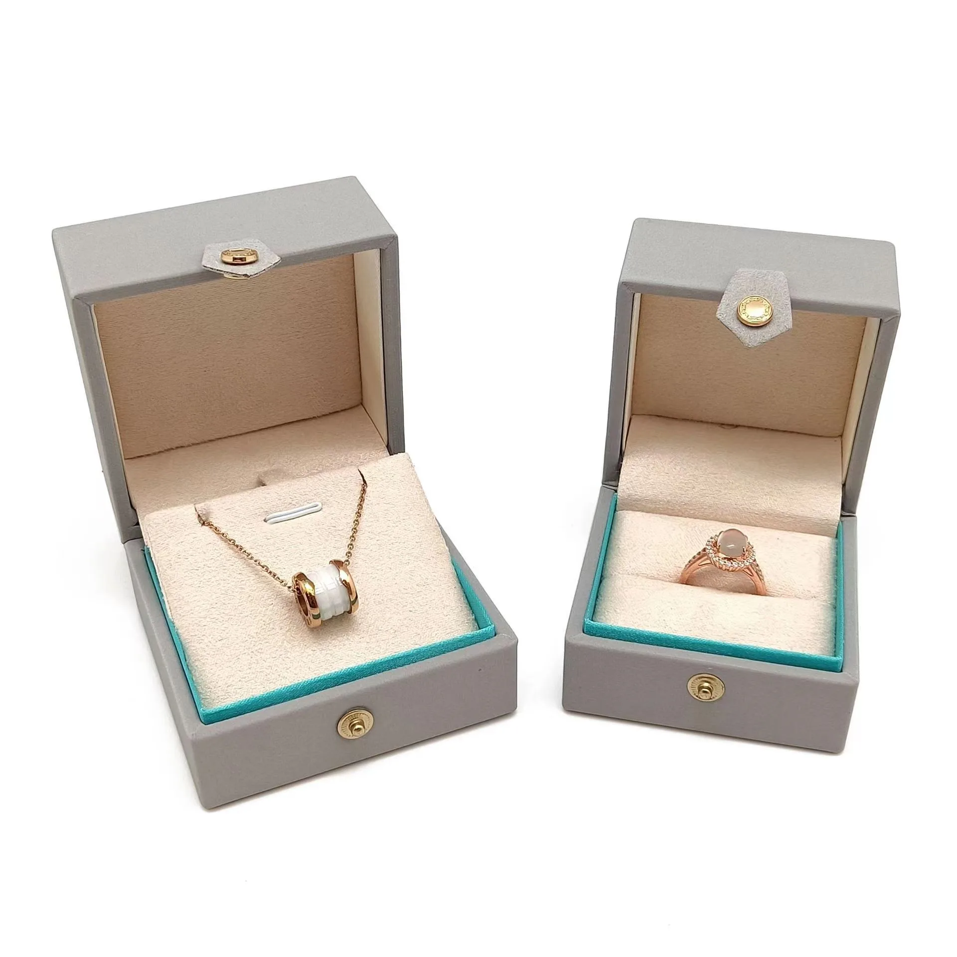 Luxury PU Leather Snap Closure Jewelry Box