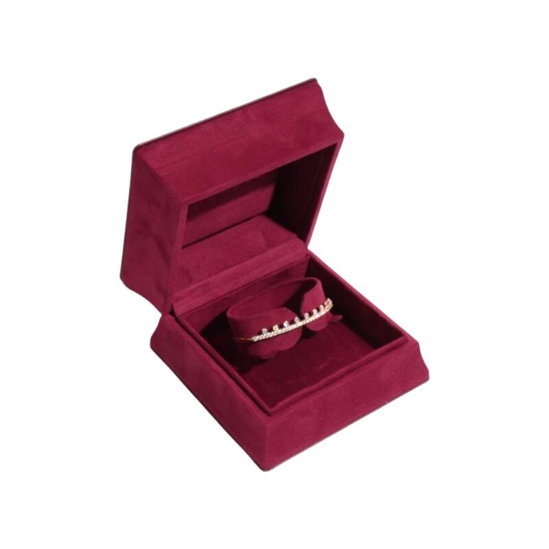 This luxury bracelet box is designed to provide elegant jewelry with a more premium presentation. With a sturdy HDPE core construction, the box is nicely covered top and bottom with top-grade leather and covered on the side panels with luxurious red velvet. Not only does the multi-layer design provide it with a more premium appearance, but it also provides additional protection for valuable bangles or bracelets. The contoured interior insert holds a bracelet firmly in place, minimizing movement in storage or shipping. Just what jewelry wholesalers need to provide fashionable and protective packaging, this bracelet box is available with optional custom logo treatments such as gold foil stamping, debossing, and silk screen printing. The rich red color provides it with a premium appearance, ideal for holiday gift-giving and showroom presentation.