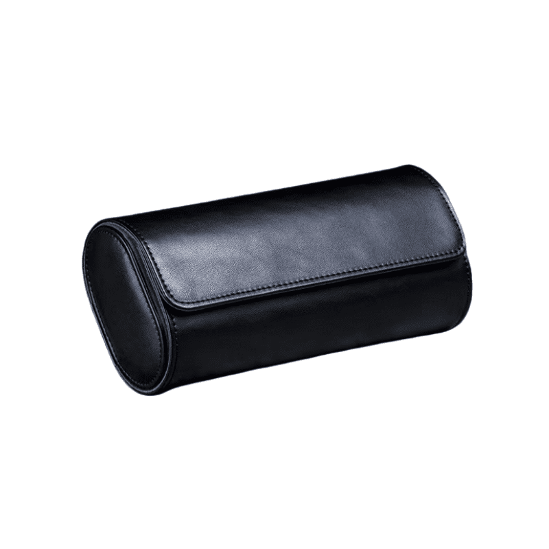 Men’s Leather Roll Organizer Watch Jewelry Box represents the ultimate in luxury, utility, and practicality for the traveler or anyone else who requires a small, elegant storage box. The box is premium black leather in the shape of a thin, rolled-up box. The box can accommodate a total of three watches and other types of small jewelry pieces. The velvet-lined interior safeguards your treasures from scratches or harm and keeps them well organized. Perfect for travel or as a means of keeping your accessories organized, this stylish organizer is both functional and fashionable. It’s small enough to be perfect for travel, and its quality finish brings a touch of class to your collection.