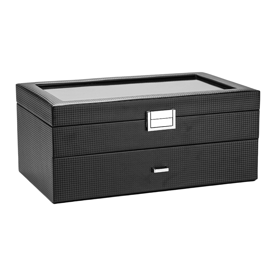 Elegant Design with Valet Drawer: This elegant watch and jewelry box features a stunning fine wood high-gloss finish with velvet-lined storage. A back valet drawer provides additional space for those little accessories so that there is always a convenient, stylish solution for men who value style and functionality.