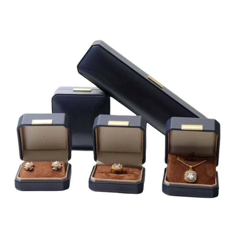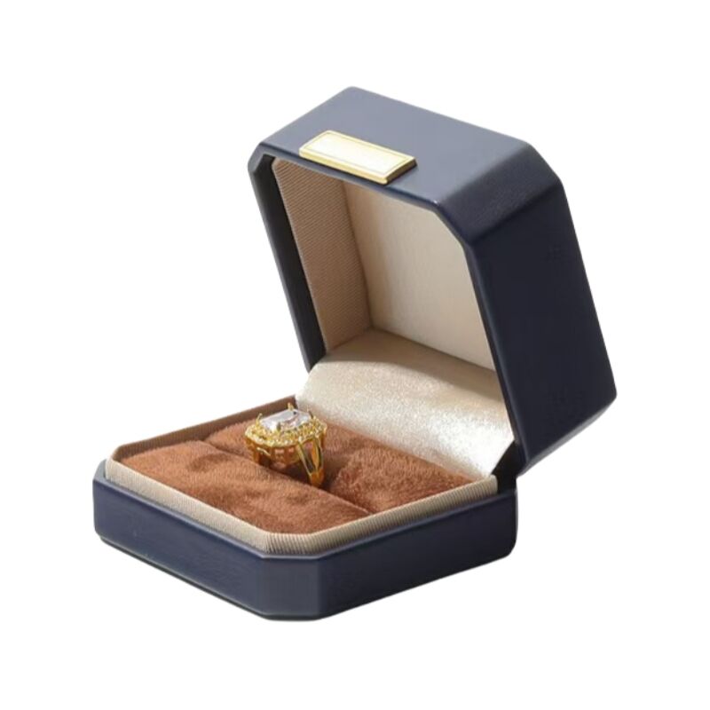 The Navy Blue Ring Box is an excellent way for jewelers and jewelry firms can send rings in elegance and grace. The octagonal box itself is of a small size with a navy blue leatherette finish and has a soft satin and suede lining that also contributes to the looks as well as the protection of the ring. Two-pocket cushion design holds the ring securely in position, and extremely high color contrast creates a feel of luxury. The plane’s top panel gives maximum space for bespoke engraving, i.e., foil-stamped logos or embossing, so companies can create a packaging brand. For wedding rings, luxury jewellery sets, or store items, the box bestows perceived value and prestige on every item that is contained in it.