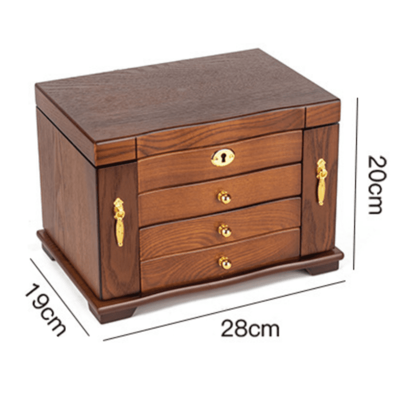 Special Feature: Mirror lid, multi-layer storage, necklace hooks, soft velvet lining