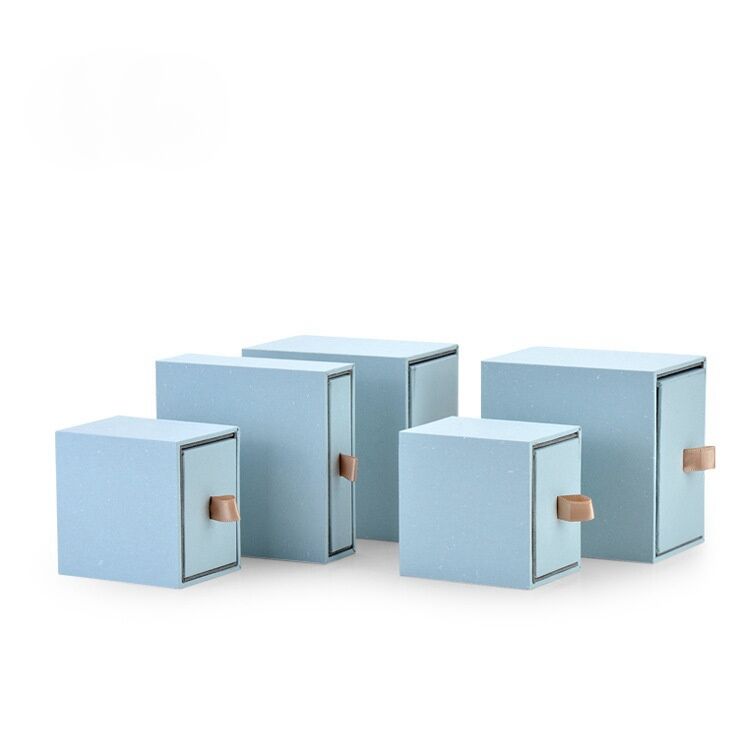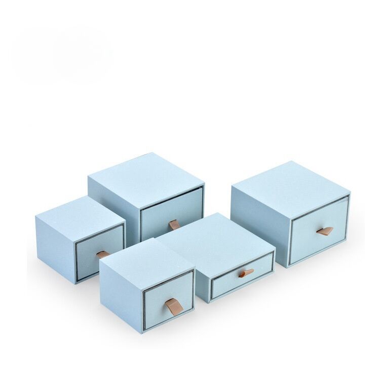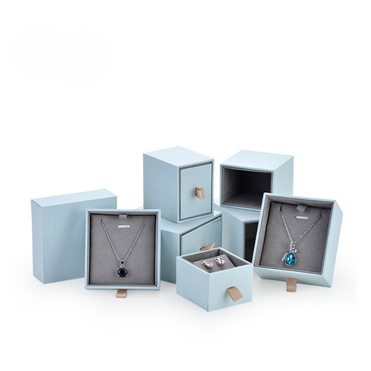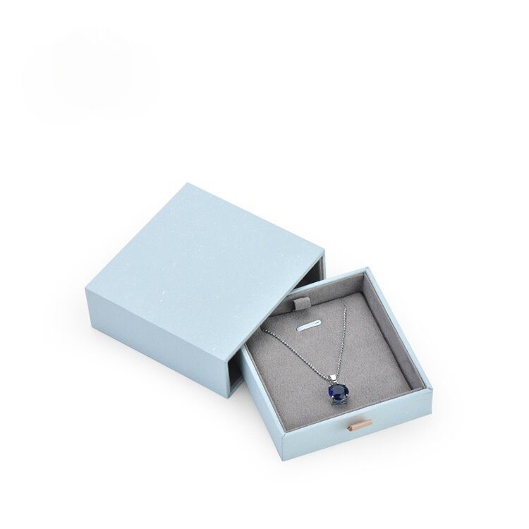 Elevate your jewelry presentation with our Sky Blue Drawer Jewelry Paper Box, wrapped in smooth art paper that exudes refinement and elegance.