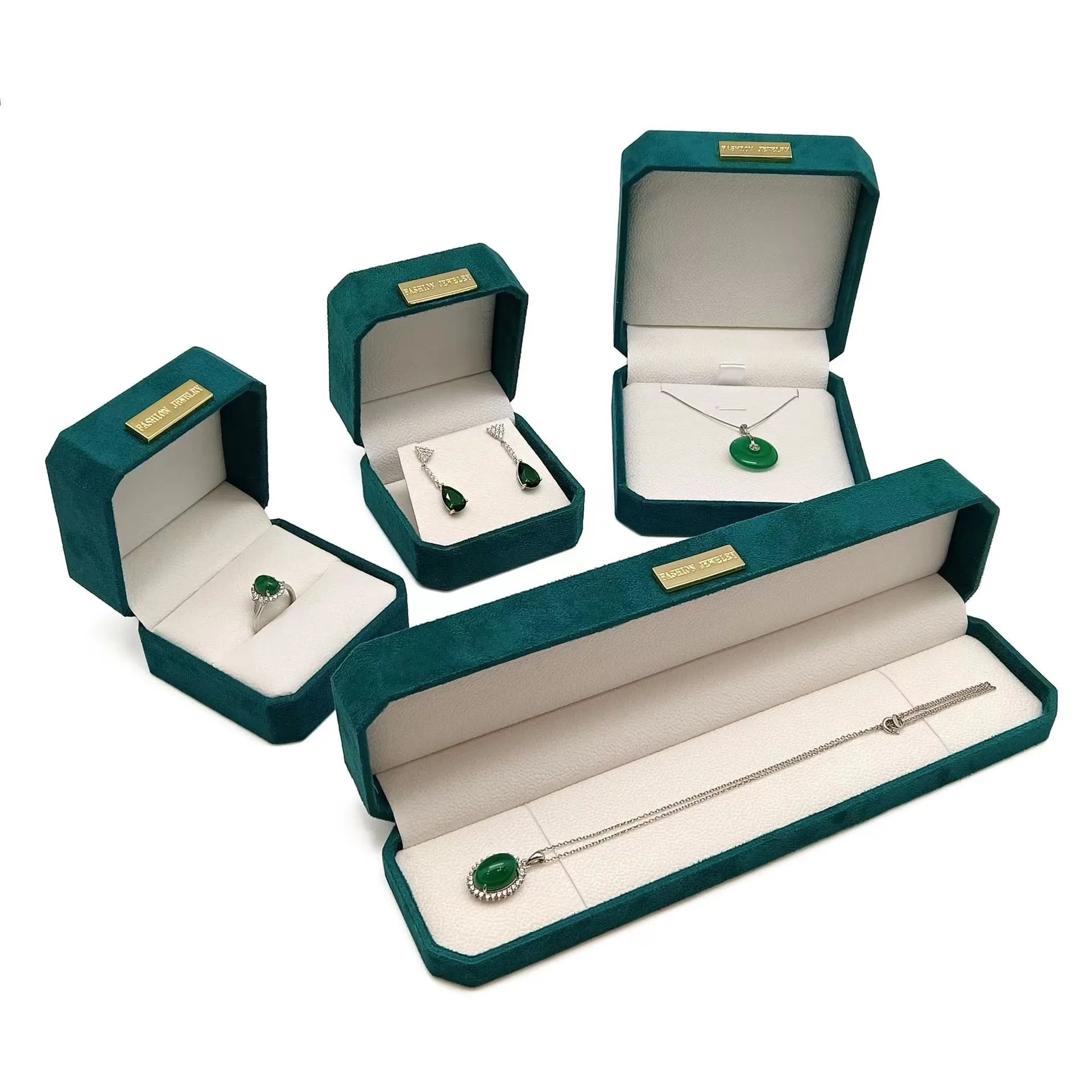 Elevate your jewelry collection with our Velvet Octagonal Jewelry Box. Its octagonal design, wrapped in suede-like fabric, exudes sophistication. Adorned with a metallic emblem at the opening, it offers both style and substance. Crafted with durable plastic framework and lined with soft white velvet, it ensures optimal protection against wear. Versatile and accommodating, this box caters to various jewelry pieces, from rings and pendants to bracelets and chains, making it ideal for both storage and display.